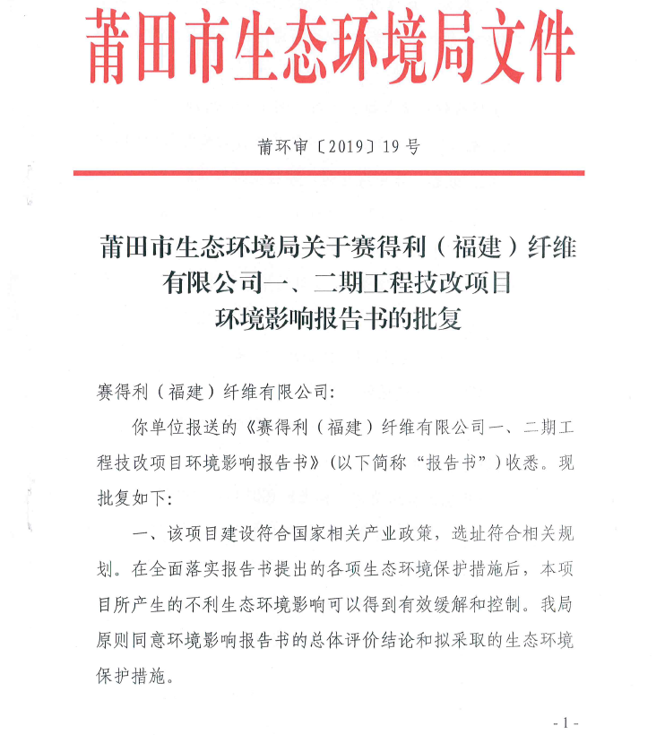 賽得利(福建)一、二期技改環評批文